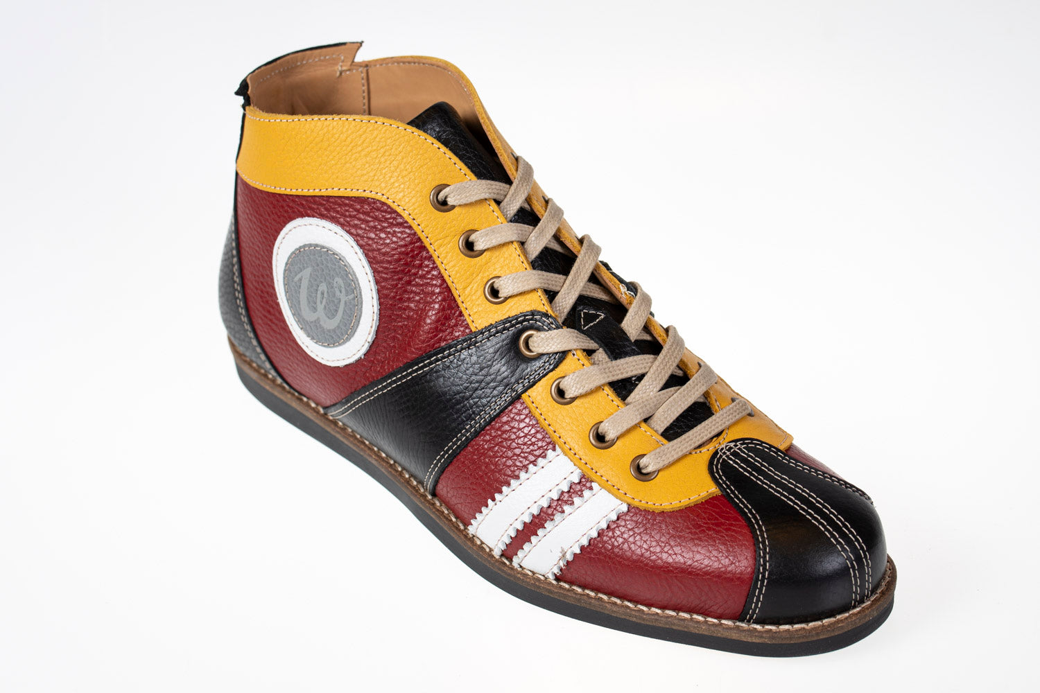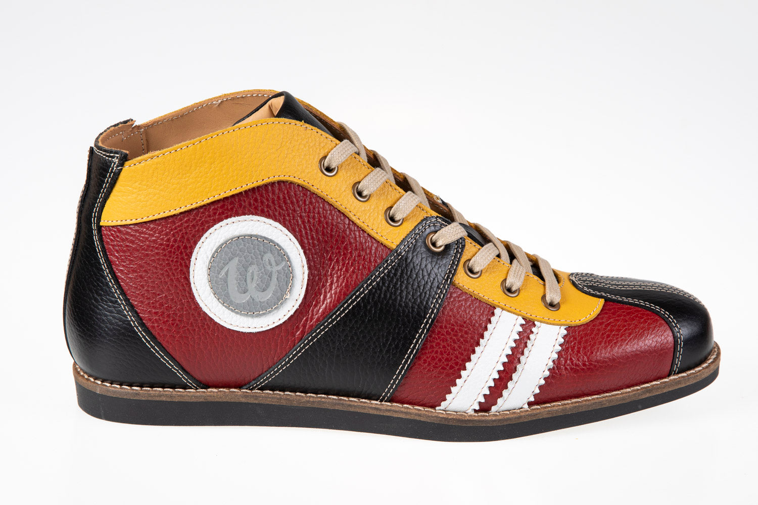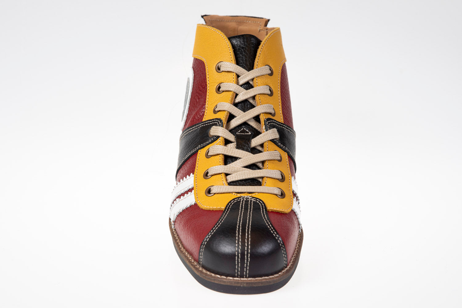 Racer mit roter Base, weissen Streifen, schwarzen "Cone Stripe" und einem gelben Top.